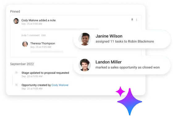 Sharing knowledge is crucial for any business. Sales teams and managers get real-time insights into deal stages, key conversations, and new opportunities — keeping everyone on the same page and ready to take action.