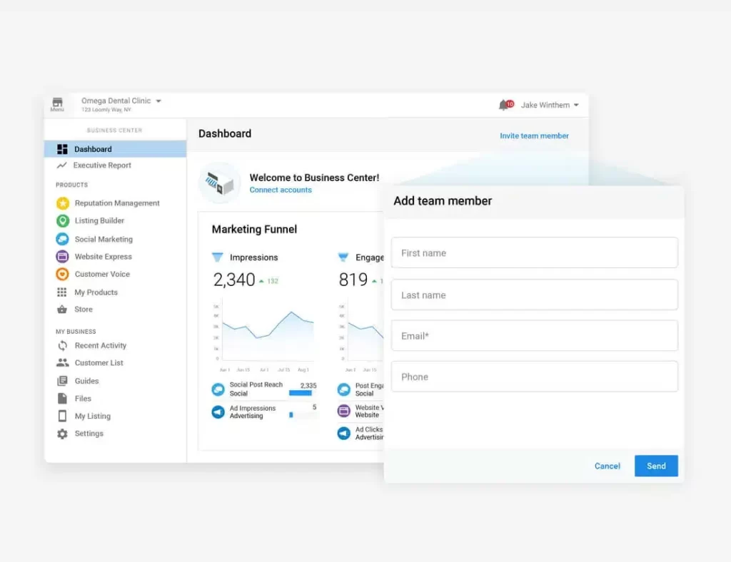 Whether you’re a small business or a growing organization, you can add as many team members as you like — there are no user limits. Give your staff the access they need to view reports, manage marketing tools, and work side by side toward shared goals.