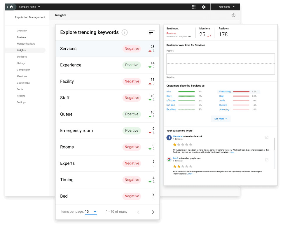 • Manage reviews on Google, Facebook, and dozens of other sources