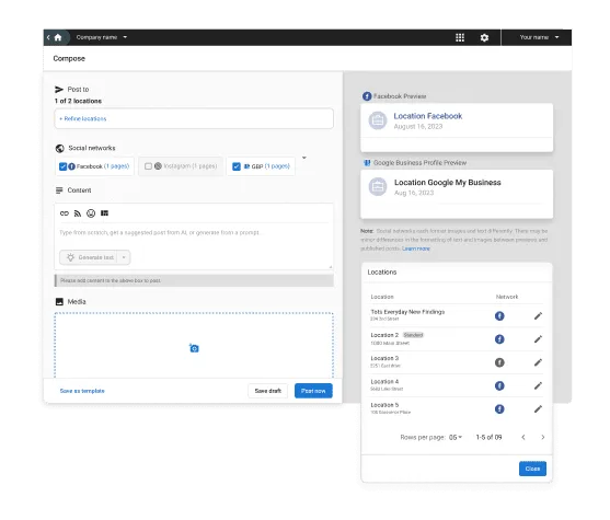 Easily post to all your business locations at once while customizing content for each spot. Track engagement and performance metrics across every page — all from one simple dashboard. Say goodbye to manual updates and stay consistent everywhere.